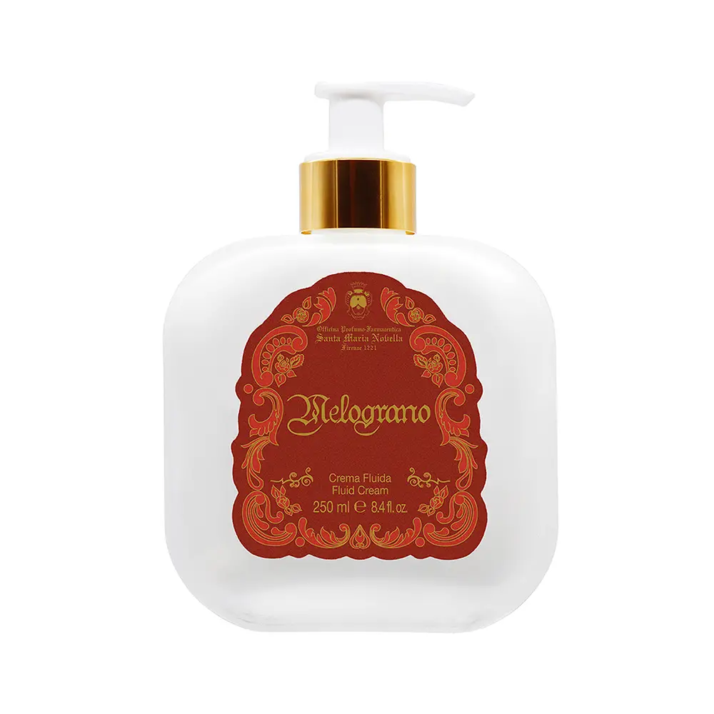 Melograno: l’essenza distintiva di Officina Profumo-Farmaceutica di Santa Maria Novella. La crema fluida è composta da una formula a base di oli e burri vegetali, appositamente studiata per rendere la pelle del corpo piacevolmente morbida e profumata. Arricchita con estratto di fiori di Melograno dalle proprietà antiossidanti, astringenti ed energizzanti.